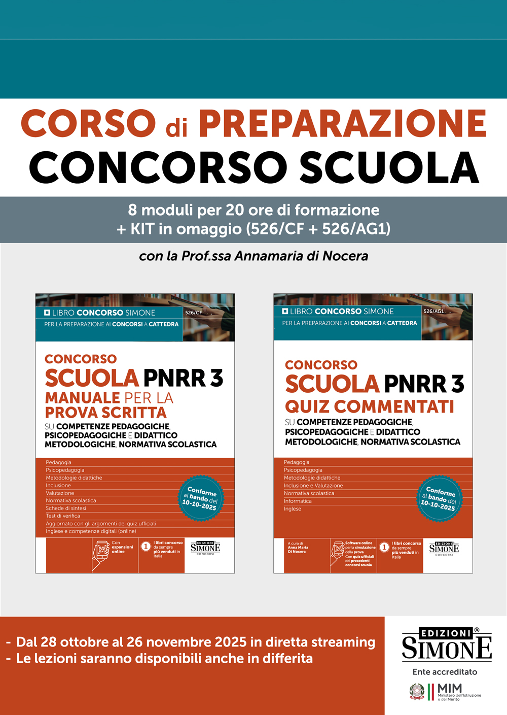 Presentazione | 23/10/2025 • dalle 17:00 alle 18:00 | Webinar gratuito di presentazione del corso e delle modalità di svolgimento del concorso e della prova scritta. Iscriviti cliccando qui. |